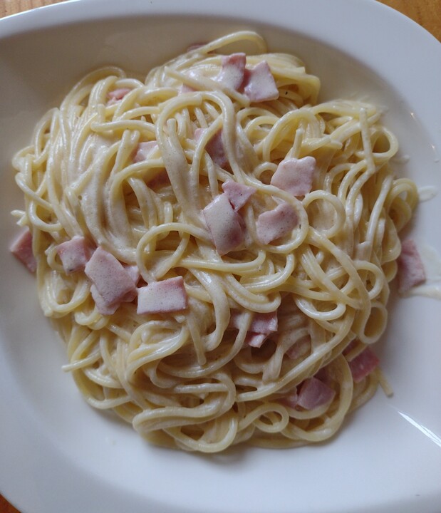 Web 200 ml Sahne 75 g geriebenen Mozzarella 50 g TK-Erbsen Salz Pfeffer Anleitungen Kochschinken und Zwiebel würfeln. Zusammen mit der Schalotte und dem Knoblauch. 500 g Spaghetti 1 Zwiebel 4 EL Olivenöl 3 Knoblauchzehen 200 g Sahne 100 g Parmesan gerieben 1 Prise Salz 1 Prise Pfeffer 1.
